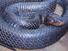 Grande y de coloración negra, con escamas suaves y brillantes. Su cuerpo es casi triangular. La barbilla puede ser roja o blanco pálido. Las serpientes jóvenes presentan más marcas rojas en el vientre y azuladas en los lados. Habita en zonas arenosas. Su medida promedio es de 2 m. Se la localiza principalmente en sudeste de los Estados Unidos (Florida). Su alimentación es a base de peces, anfibios, reptiles, pájaros y pequeños mamíferos. Pone hasta 10 huevos en cada nidada. Clic aquí para añadir una descripción de Serpiente índigo...)