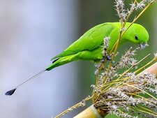 Información de interés : Mide aproximadamente 29 cm. Principalmente verde amarillento.La cola presenta una particularidad, posee en las plumas centrales de la cola una prolongación fina, casi en forma de pelo que termina con una forma mas ovalada( con forma de raqueta ). Muy leve dimorfismo sexual, la hembra es ligeramente mas oscura que el macho. Pico color hueso. Clic aquí para añadir una descripción de Prioniturus Luconensis...)