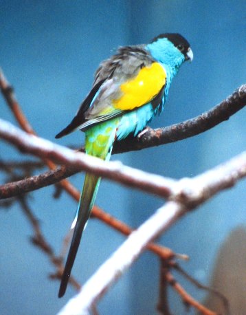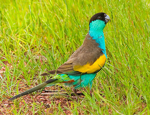 Información de interés : Mide aproximadamente 26 cm. Principalmente azul. A partir de la mitad de la cara es negro , pasando por la frente y llegando hasta la parte superior de la cabeza. Plumas de la zona de la cloaca rojizas. Alas color gris-marrón con una mancha amarillenta alargada en el borde.Cola larga. Pico gris. Presenta dimorfismo sexual. La hembra es color verde pálido, donde es negro en la cabeza del macho, es marron en la hembra. Clic aquí para añadir una descripción de Psephotus Dissimilis...)